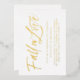 Tombez amoureux ! Invités Invitations à votre événement avec cette invitation personnalisée de fiançailles de feuille d'or. Il est doté de lettres brosses et de typographie simple. Personnalisez en ajoutant les détails de votre événement. Cette invitation de fiançailles en feuille d'or est parfaite pour les fiançailles d'automne ou d'automne. Des éléments correspondants sont disponibles.
