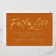 Tombez amoureux ! Invités Invitations à votre événement avec cette invitation personnalisée de fiançailles de feuille d'or. Il est doté de lettres brosses et de typographie simple. Personnalisez en ajoutant les détails de votre événement. Cette invitation orange de fiançailles est parfaite pour les fiançailles d'automne ou d'automne. Des éléments correspondants sont disponibles.