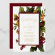 Un bouquet de fleurs éthérées dans les tons blanc, or, orange et rouge foncé avec verdure sur un panneau blanc, doré et rouge foncé bordé d'un arrière - plan blanc invitations vos invités à ce qui est sûr d'être un "Mariage" rustique mémorable avec l'occasion élégante. Le dos est orné d'un arrière - plan rouge foncé. Ajoutez simplement vos noms et les détails du mariage à compléter. Tout le texte est dans le vrai papier. Le texte du script ne peut être modifié que par le concepteur. Si vous avez besoin de modifier ce texte, veuillez le créer. Conception composite par Holiday Hearts Designs (droits réservés).
