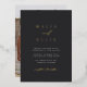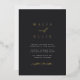 Une belle faire-part de mariage minimaliste à base de typographie avec vos noms en lettres d'or frappantes, jointe avec des caractères de script de calligraphie moderne en lettres d'accent. Personnalisez avec les détails de votre mariage en dessous, et ajoutez une photo à fond de saignement vertical ou portrait orienté vers l'arrière. Notre colorway cendré fait une déclaration classique avec du papier blanc et de l'or sur un arrière - plan doux et noir.