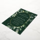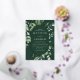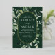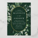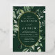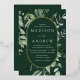 Invitations de mariage élégantes avec vos détails mariages nichés à l'intérieur d'un cadre ovale en feuille d'or entouré d'eucalyptus, fougères et autres riches verdure avec un arrière - plan vert foncé. Les invitations de mariage botaniques modernes s'inversent à un arrière - plan vert solide. Conçu pour coordonner avec notre collection de mariages de verdure Abondante.