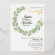 Créez d'élégantes invitations de mariage qui comportent des couronnes d'eucalyptus aquarelle et du texte noir et or sur arrière - plan blanc. Le texte modèle facilite la personnalisation. Le feuillage botanique orne les côtés avant et arrière des invitations de mariage.