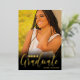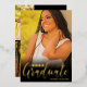 Cette invitation élégante et simple à obtenir un diplôme est parfaite pour un diplômé moderne. Il présente une véritable typographie dorée sur le devant avec un dégradé noir et une photo de fond de l'invité d'honneur. Au dos se trouvent deux autres photos et toutes les informations de la fête. C'est un design chic, minimaliste, moderne et cool, parfait pour impressionner vos amis et votre famille. ***REMARQUE DE CONCEPTION IMPORTANTE : Pour toute demande de conception personnalisée comme les produits correspondants, les modifications de couleur, les modifications de placement ou toute autre demande de modification, veuillez envoyer un message au concepteur. Vous pouvez même soumettre une demande pour un design entièrement personnalisé et nouveau.