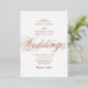 Une belle feuille d'or rose faire-part de mariage avec typographie de script traditionnelle. Un mariage d'or blanc et rose magnifique invite design avec une typographie classe minimaliste. La typographie de script traditionnel crée un design élégant et intemporel de feuille d'or rose faire-part de mariage.