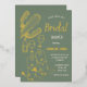 Occidentale, bottes, mousseuse, cowgirl, sauge vert et or, feuille d'or Rose, douche nuptiale, invitation à la vraie feuille. Belle, élégante, moderne invitation à la douche nuptiale.