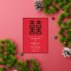 Invitation en feuille d'or pour mariage chinois Double Chance