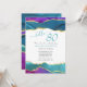 Abstraite encre fumée couleur aquarelle en rose fushia, turquoise et or couleurs 80e anniversaire invitation avec police turquoise sur les prénoms, une invitation de fête pour quelqu'un qui a 80 ans.