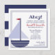 Cette invitation de fête nautique comporte un bateau à voile doux et simple et des rayures de marine sur le dos. Une version de ce design avec un drapeau rose et du texte est également disponible ainsi que des autocollants de faveur de la partie correspondante et des étiquettes de conservation dans notre magasin.
