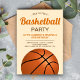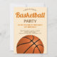 Invitation vos invités avec cette invitation de fête d'anniversaire cool avec un basket-ball avec typographie moderne contre un arrière - plan beige. Ajoutez simplement les détails de votre événement sur ce modèle facile à utiliser pour en faire une invitation unique. Retournez la carte pour révéler un motif rayé orange et noir au dos de la carte.