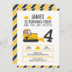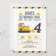 Invitation Enfants Construction Bulldozer fête d'anniversaire