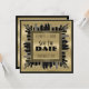 Créez votre propre invitation de style Art déco, inspiré de Great Gatsby, avec ce design qui présente un paysage urbain avec cadre motif clé grecque en or et noir élégant. Remplacez l'exemple de texte par le vôtre pour un cadeau personnalisé.
