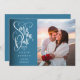 Cette élégante photo en écriture blanche sauvez la carte de date comprend votre photo spéciale et un script décoratif enregistrez la date au-dessus de vos noms, date et lieu. Le verso contient des informations supplémentaires sur la date, y compris votre site Web mariage. Vous pouvez customiser l'arrière - plan à votre couleur préférée. Conçu par Thisisnotme©