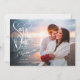 Cette photo de script élégant enregistrer la carte de date comprend votre photo et un script enregistrer la date au-dessus de vos noms, date et lieu. Vous pouvez personnaliser la couleur au verso pour l'adapter ou ajouter un message. Conçu par Thisisnotme©