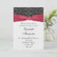Cette invitation comporte un panneau damassé enveloppé d'un ruban rouge. La partie inférieure de l'invitation a un panneau damassé dans une couleur de contraste clair. Si vous le souhaitez, ce panneau peut être supprimé dans le panneau personnaliser pour laisser cette partie blanche. Convient à de nombreuses occasions, comme un mariage tel que représenté ou customiser le libellé pour convenir à un fiançailles, anniversaire, anniversaire, douche ou toute autre occasion spéciale élégante et sophistiquée.