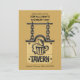 Une belle invitation "pour homme" avec un panneau de taverne représentant une chope de bière. Le fond est doré foncé et le panneau est d'un doré plus clair et il est suspendu à une épaisse chaîne noire. Parfait pour une célébration masculine.