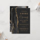 clients Invitations à la grande ouverture de votre entreprise avec cette élégante invitation moderne, avec une bordure en aquarelle noire taillée avec parties scintillant en faux or. Le texte personnalisable combine écriture manuscrite couleur or, cuivre et polices italiques sur un arrière - plan non noir. L'envers est assorti d'un design d'agate noir et or.