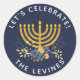This party invitation envelope seal features modern block typography, a fun floral bouquet and watercolor menorah. Personalize the text and/or background colour. To customize the navy blue background colour, choose customize tool and select any of your choosing.