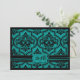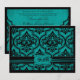 Carte gothique de faire-part de mariage de thème de damassé de grunge-regard turquoise et noir d'impression.