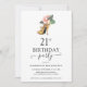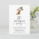 Carton d'invitation pour une fête d'anniversaire de 21 ans "Modern Elegant Gold Tropical Floral Gold High Heels" avec notre magnifique escarpin doré à paillettes en aquarelle entouré de fleurs tropicales roses et vertes. Le fond est un lavis doré luxueux en aquarelle. Facile à personnaliser avec vos informations pour un carton d'invitation à une fête d'anniversaire simplement élégant. Veuillez nous contacter à cedarandstring@gmail.com si vous avez besoin d'aide pour la conception ou les produits assortis.