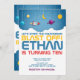 Amusez-vous avec cette invitation à l'anniversaire sur le thème de l'espace qui met en vedette un arrière - plan de galaxie cosmique avec étoiles et planètes. Parfait pour les enfants qui aiment les fusées, les astronautes, et tout ce qui touche l'espace, cette invitation donne le ton d'une célébration hors du monde. Entièrement personnalisable avec les détails de votre fête pour le rendre unique.