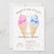 Faites de votre bébé une fête de genre inoubliable avec cette invitation à la crème glacée d'été moderne. Le design présente de beaux cônes de crème glacée rose et bleu sur un arrière - plan arrosé, ce qui en fait un endroit à la fois élégant et charmant, tandis que l'expression "What's the scoop?" ajoute un élément ludique à la carte. Utilisez les outils de conception pour customiser le texte, la police et les couleurs ! Aussi disponible en téléchargement numérique.