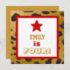 Ce design personnalisable avec son cadre carré, son imprimé d'étoile rouge et de guépard est un moyen amusant et branché pour les invitations de célébrer un quatrième anniversaire pour une fille de 4 ans. Tout le texte est entièrement personnalisable. Vous pouvez expérimenter différents types de papier en cliquant sur l'onglet "Options d'invitation" dans le coin supérieur droit. Je vous recommande le papier métallique dans la glace qui donne à votre invitation d'anniversaire un éclat et un éclat festifs. Joli !
