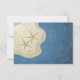 Une carte de numéro de table à thème de plage et d'océan représentant un rivage sablonneux avec des étoiles de mer. Des vagues océaniques bleues... Personnalisez en ajoutant différents numéros de table selon vos désirs.