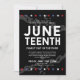 Célébrez la fête du 11 juin ! Ces invitations ont un design minimal mais significatif sur le thème de la Junetten. Dans l'arrière - plan sont des chaînes brisées transparentes pour symboliser la liberté et le but réel de la fête du 17ème. En haut et en bas se trouve une ligne d'étoiles représentant les États-Unis. Tous les éléments de cet élément sont déverrouillés et personnalisables, y compris la couleur noire solide de la toile de fond. Avec cela à l'esprit, amusez-vous à être créatif et à en faire votre propre.