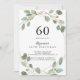 Cette invitation à la fête de 60e anniversaire d'eucalyptus vert géométrique est parfaite pour une simple fête d'anniversaire. Le design est composé de branches d'eucalyptus vert botanique dessinées à la main et de feuilles ornant un cadre géométrique.