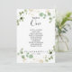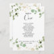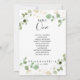 Ce tableau d'eucalyptus en or numéro 1 est parfait pour un mariage rustique. Le design comprend un feuillage vert d'eucalyptus aquarelle avec des confettis d'or. La carte imprime recto verso (recto verso)