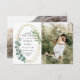 Bordure dorée avec feuilles d'eucalyptus aquarelle et une photo sur le devant avec une autre au dos