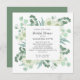 Cette élégante invitation à la douche nuptiale présente une épaisse bordure de verdure luxuriante, d'eucalypse et de fleurs vert clair.