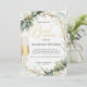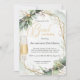 Vos invités adoreront ces invitations avec des feuilles d'eucalyptus et des accents de verdure dorée sur un cadre géométrique doré avec un verre pétillant de champagne doré. Personnalisez avec vos propres informations.