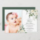 Invitation Eucalyptus Fleurs Blanches Photo Girl Baptême