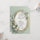 Motif: The design features a modern soft sage green background. The text is framed by a double-layered, irregular geometric gold frame that overlays an oval shape. The frame is decorated with a cascade of watercolor eucalyptus leaves in pale blue-green and darker green shades. Subtle gold glitter dust and leaf accents complete the look.