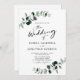 Eucalyptus Verdure Chic Moderne Calligraphie QR Code RSVP Faire-part de mariage... Notre faire-part de mariage botanique "tout en un" présente d'élégantes branches d'eucalyptus avec des feuilles sauge et émeraude sur un arrière - plan blanc croustillant. Chic calligraphie moderne affiche le texte pour "le Mariage de", "et", ainsi que "réception à suivre" accompagné d'une élégante typographie serif pour le texte à personnaliser. Le verso de l'invitation affiche le code QR de votre site Web mariage ainsi que l'URL du site lui-même permettant à vos invités de facilement RSVP en ligne et de voir tous les détails généralement envoyés dans un paquet mariage. L'exemple de code QR graphique et tous les exemples de texte (mis à part les éléments de calligraphie graphique) peuvent être facilement révisés avec vos propres informations sur le modèle de personnalisation. Cette invitation de style moderne est à la fois économique et élégante, créée spécialement pour les futures mariées occupées.