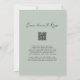 Eucalyptus Verdure Chic Moderne Calligraphie QR Code RSVP Sage Faire-part de mariage... Notre faire-part de mariage botanique "tout en un" présente d'élégantes branches d'eucalyptus avec des feuilles de sauge et d'émeraude sur un arrière - plan léger de sauge. Chic calligraphie moderne affiche le texte pour "le Mariage de", "et", ainsi que "réception à suivre" accompagné d'une élégante typographie serif pour le texte à personnaliser. Le revers de l'invitation affiche le code QR de votre site Web mariage ainsi que l'URL du site lui-même permettant à vos invités de facilement RSVP en ligne et de voir tous les détails généralement envoyés dans un paquet mariage. L'exemple de code QR graphique et tous les exemples de texte (mis à part les éléments de calligraphie graphique) peuvent être facilement révisés avec vos propres informations sur le modèle de personnalisation. Cette invitation de style moderne est à la fois économique et élégante, créée spécialement pour les futures mariées occupées.