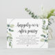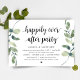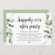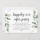 Carte d'invitation sur le thème de la verdure rustique moderne Eucalyptus, écriture noire (avec titre de carte: fête pour toujours heureuse). C'est parfait pour votre réception de mariage en fuite / fête de célébration après le mariage. Ajoutez vos détails dans une police / lettrage noir assorti.