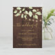 Rustique pays faire-part de mariage élégant modèle sur une grange brune arrière - plan avec aquarelle feuillage vert feuilles et élégant élégant script de calligraphie en faux or chic.++++++++++++++++++++++++++++ L'invitation est appropriée pour l'été ou automne jardin extérieur, ferme, grange, jardin mariages campagnards rustiques.