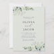 Amusez-vous dans une ambiance romantique pour votre mariage avec ce design moderne avec des feuilles d'eucalyptus aquarelle. Vous pouvez ajouter plus d'informations sur votre mariage au dos de l'invitation.