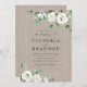 Aquarelle chic moderne vert eucalyptus à fleurs blanches et cadre blanc sur papier kraft arrière - plan, avec monogramme de couple sur le dos, élégant et élégant, grande invitation pour mariage rustique, mariage botanique et mariage de plage toute l'année. Voir toutes les pièces correspondantes de la collection