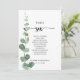 Ce tableau vert d'eucalyptus numéro 6 est parfait pour un mariage simple. L'aménagement comprend des branches et des feuilles d'eucalyptus botaniques élégants dessinés à la main dans des aquarelles. La carte imprime recto verso (recto verso)
