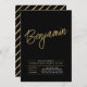 Célébrez votre jour spécial avec cette invitation de fête simple et élégante. Ce design présente une écriture manuscrite chic avec une mise en page épurée et une combinaison de couleurs noir et or. Vous pouvez personnaliser le texte, la police et les couleurs. Plus de fournitures pour événements sont disponibles dans ma boutique BaraBomDesign.