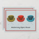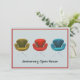 Montré ici pour un cinquantième anniversaire de mariage, cette invitation contemporaine moderne avec de rétros chaises vintages impressionnera vos invités avec leur style spécial. Personnalisez-la pour votre propre événement mémorable et ajoutez vos propres détails faits sur commande sur le dos. Le vert, le rouge et la moitié du siècle bleue turquoise Eames ont inspiré des chaises sur l'arrière - plan gris doux avec l'équilibre rouge d'accent.