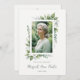 The card's design features a floral and foliage frame delicately surrounding the photograph of the loved one, adding a touch of serenity and softness to the ensemble. Flowers and foliage, symbols of renewal and respect, intertwine with the presentation, creating a composition that pays homage to the ephemeral nature of life.