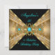 Invitation Fabuleux 50 Turquoise Blue Gold Black Damask Anniv