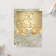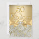 Invitation de fête d'anniversaire des 50 ans Fabuleux. Dessin élégant de ruban diamant or et de volutes florales. Veuillez noter : Toutes les images sont plates ! Elles ne contiennent pas de véritables bijoux !