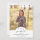 Cette annonce de remise de diplômes élégante et stylée comporte une photo en forme d'arc en surimpression blanche, ainsi que des modèles de texte pour une personnalisation simple. Le dos contient un modèle de 2e photo et des modèles de texte pour une personnalisation plus poussée, par exemple pour partager les projets d'avenir du diplômé !