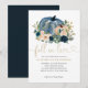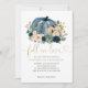 Fleurs FAIRE CONNAISSANCE Bleu Marine Rose Blush Botanique Verdure Blanc Or Paillettes Étincelles Citrouille Automne Fête de mariage Invitation