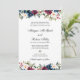 Avec des fleurs à l'aquarelle associées aux couleurs bleu marine et bordeaux, ce faire-part de mariage est parfait pour toutes les saisons